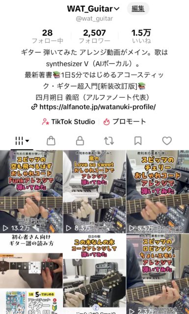 昨年末くらいからTikTokを本格的にスタートし、色々な有名曲をコードアレンジした動画を日々アップしています。